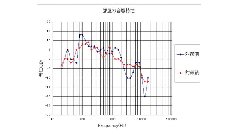 対策前後の部屋の音響特性