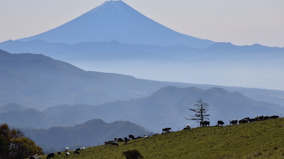 この牛たちは、富士山の雄大な姿に気づくこともなく、ただひたすら草を食べるだけで一生を終えるのかと思いました。
