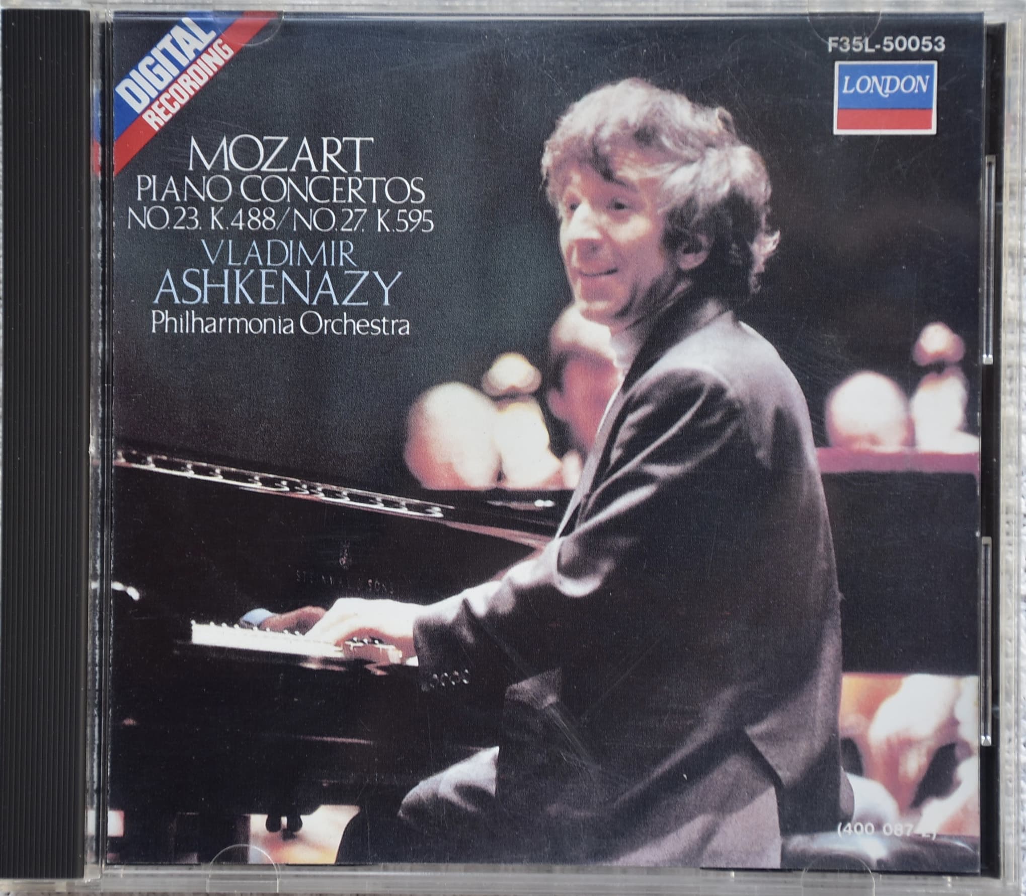 その時買ったCDが、アシュケナージの演奏するモーツァルトのピアノ協奏曲23番と27番が収められたアルバムです。会社の近くの溝ノ口に、社員証を見せると割り引いてくれるレコード店がありました。会社の帰りにその店に寄り、さっそく購入しました。当時はCD1枚が3500円もしました。